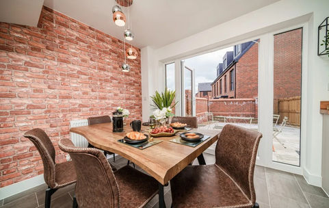 The ground floor has a Lounge with sofa and bistro table, kitchen diner has 6 person dining table, WC/cloak room, patio in rear garden with outdoor furniture. The house is located on a new estate and is close to the M602 motorway. Shops and takeaways are a 5-minute walk, and Tesco Express and Lidl are a 5-minute drive.