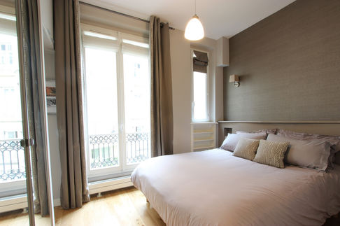 1 bedroom apartment overlooking a nice green courtyard.55 sqm, 2nd floor with elevator. Living room with a dining table and 6 chairs. Opened all-equipped modern kitchen. Sofa convertible 3 seats with a thick and comfortable mattress (Queen size)Large room with a Queen size bed. Large wardrobe / closet in the bedroom also in the main room. Bathroom with Italian shower ensuite to bedroom. Separated toilet. Washing machine and dryer (MIELE) in the bathroom. Gas heating.