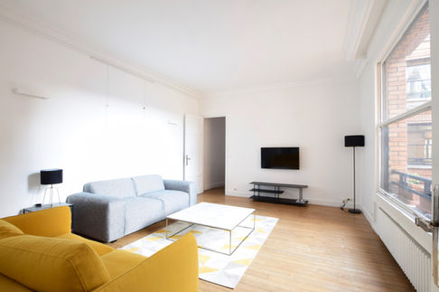 Large 1 bedroom apartment with an area of around 62 m².Located on the 5th floor with elevator on a quiet courtyard. Entrance, large living room on bright courtyard without vis-à-vis. Separate fully equipped kitchen. Equipment: dishwasher, washing machine, toaster, Nespresso coffee machine …Large bright bedroom with a king Size bed on a quiet courtyard. Shower room with shower and bathtub. Heating and collective hot water. Very quiet apartment close to all amenities. Nice view on the Eiffel Tower.